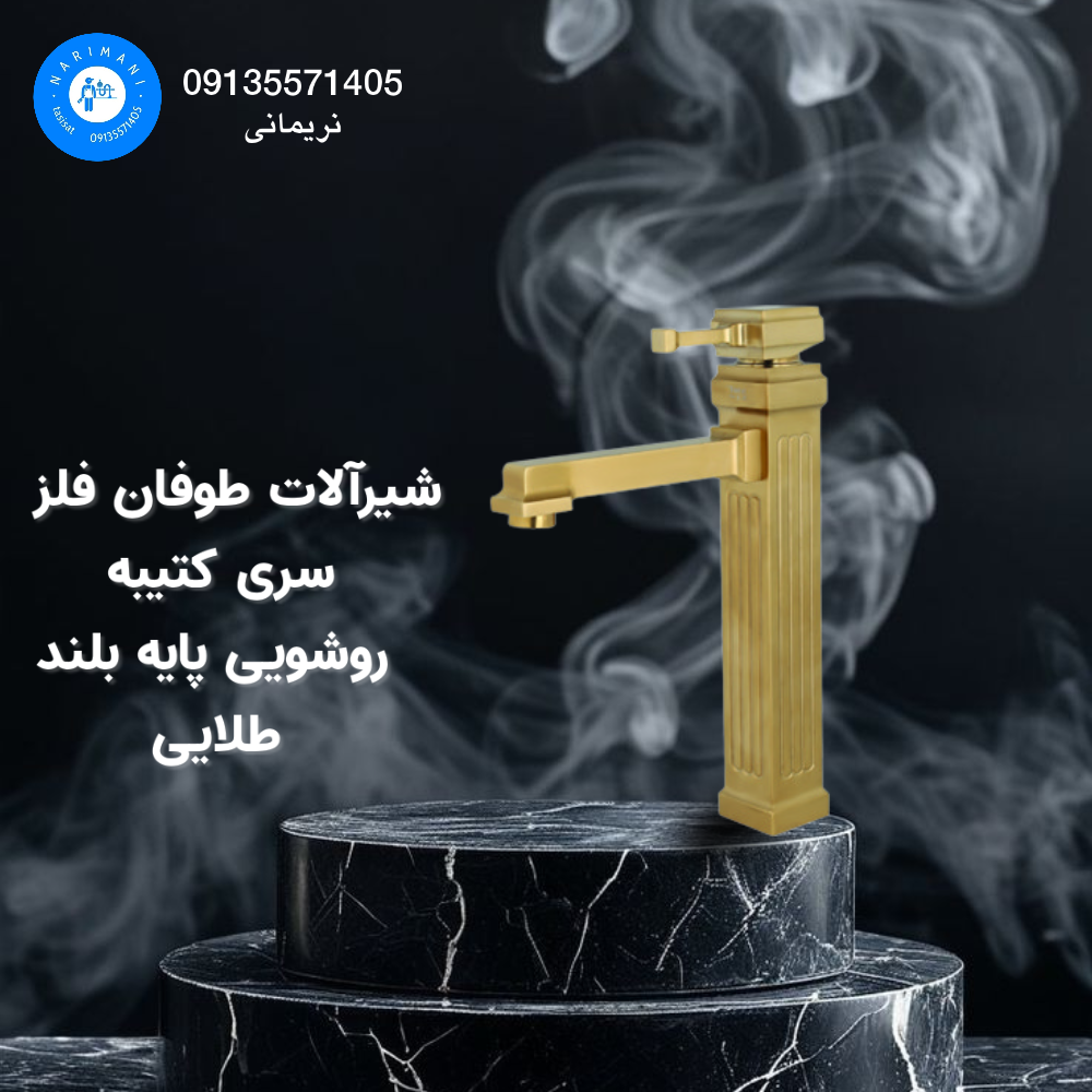 شیرآلات طوفان فلز سری روشویی پایه بلند مدل کتیبه رنگ طلای۱۲٬۶۵۰٬۰۰۰ تومان